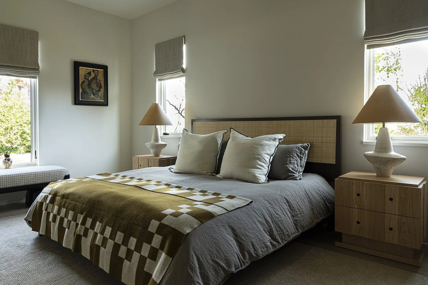 Anne Darby Parker’s Between Us (available) anchors a wall in a guest bedroom.