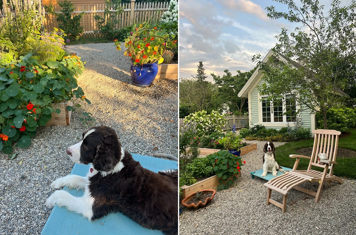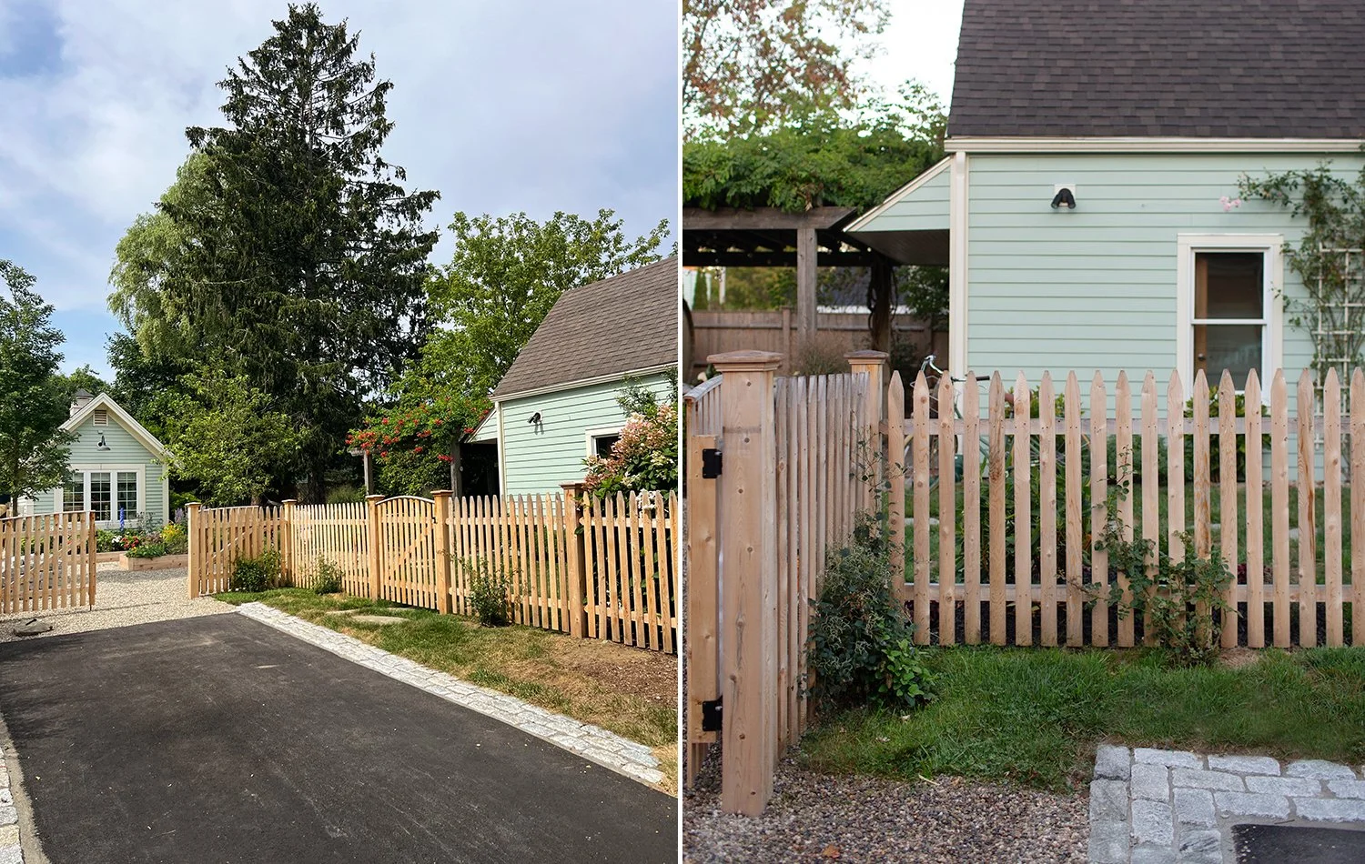 We had the driveway dug up, replaced the top section with pea stone, and paved the rest in asphalt. The new layout required a fresh fence configuration from Burns Fencing, and our new fenced-in yard feels so much more expansive. Our dog, Thatcher, is quite pleased!