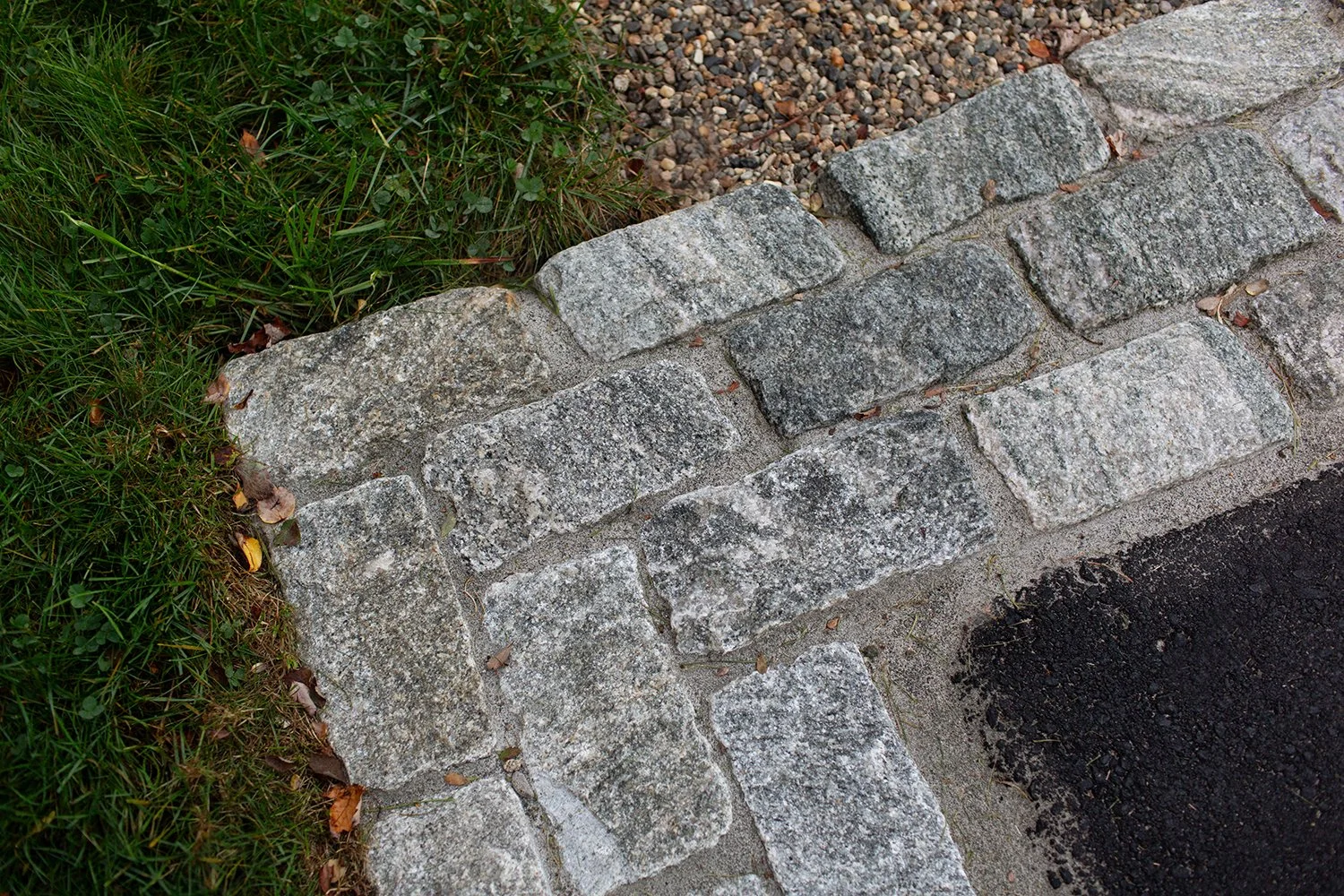 The asphalt driveway wasn’t quite as wide as we’d planned, so Michael laid a three-sided cobblestone apron at the top. Each of the three sections took one weekend of work, so it was a great project that could be spaced out as time and weather permitted.
