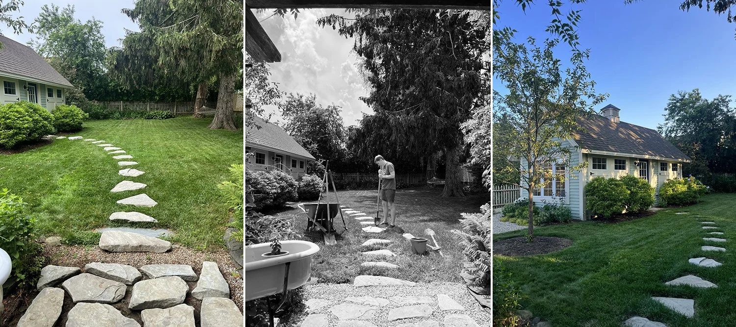 Selecting our blue stone stepping stones and cobblestone pavers from Swenson Stone Works was a fantastic memory from the summer. We landed on the above stepping stones from Pennsylvania to create a path to the gallery space. Michael laid this section above and an additional section leading to the house in one evening while I was on a post-dinner dog walk. Another task that I thought would take days!