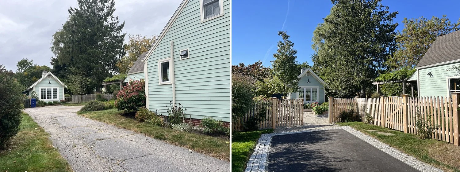 A before + after of the driveway that was in dire need of replacement. We are so happy with how it came together!